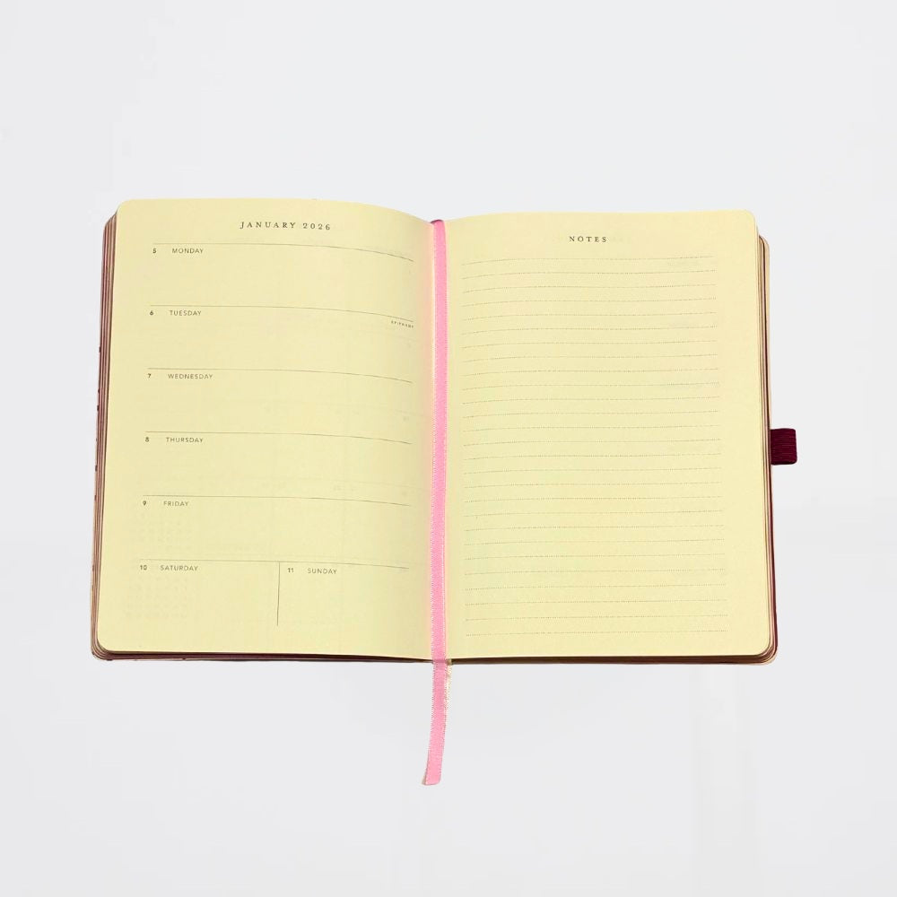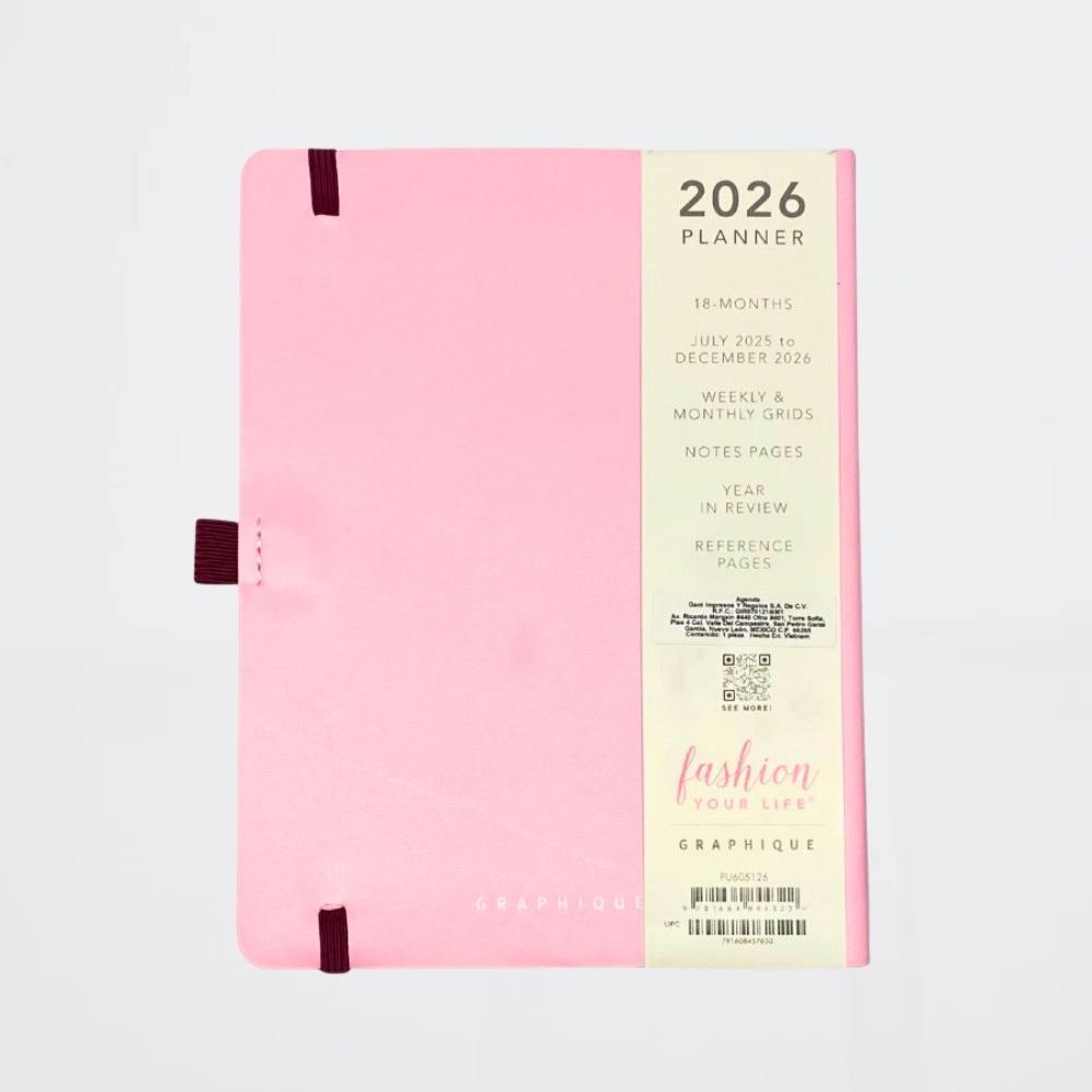 Agenda de 18 meses (julio 2025 – diciembre 2026), diseñada para mantener tu organización al día con practicidad y estilo. Cuenta con vistas semanales y mensuales que te permiten planificar a detalle tus actividades cotidianas y al mismo tiempo visualizar tus metas a largo plazo. Ideal para estudiantes, profesionistas o cualquier persona que busque un equilibrio entre planificación estratégica y control diario en un solo lugar.