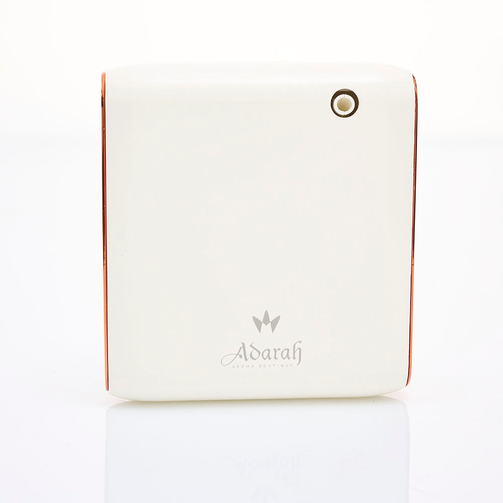 Difusor inteligente, para espacios pequeños oficinas, salas de junta, recepciones, pasillos, baños de hasta 60 m2. Equipo 100% programable vía Bluetooth por medio de la app ADARAH® proporcionando el máximo nivel de control con un temporizador diario o semanal que permite hasta 5 períodos de operación únicos, tiene una duración de la recarga de hasta 30 días, en programación sugerida. Medidas: 17.4x 15.6 x 6.2 cm. Capacidad de 100 ml. El aroma se vende por separado