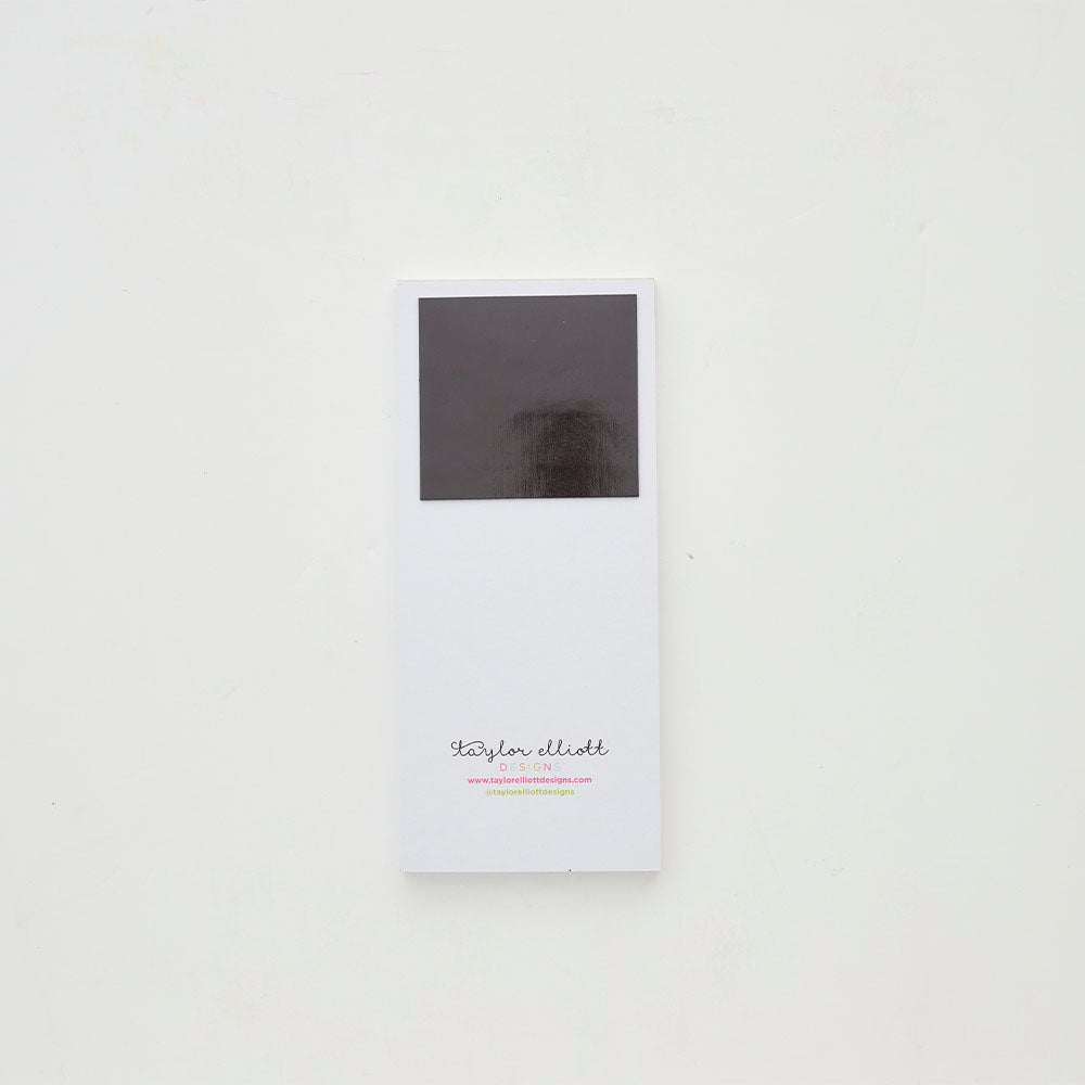 Block de notas con 50 hojas. Incluye imán en parte posterior. Medidas: 20 x 8 cm