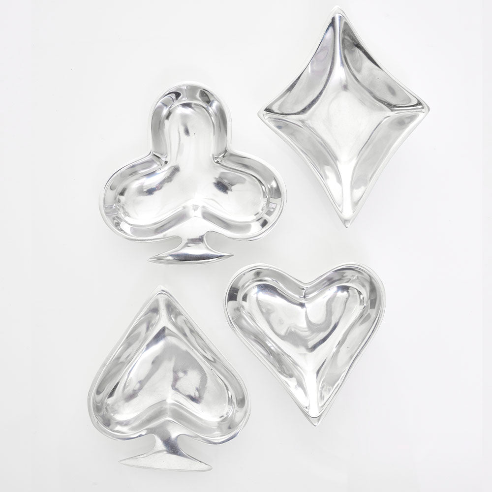 ¡Decora tu zona de juego con este plato de decoración! sirve para la botana, fichas, y muchas utilidades mas que le puedas dar, contamos con el juego completo de la bajara inglesa para que tengas tu jugada perfecta. Medida: 13.5 x 18 cm. Material: Aluminio.