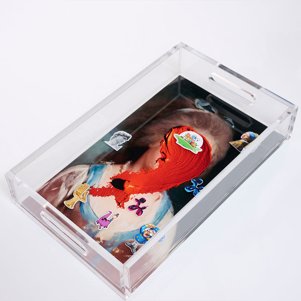 Elegante charola de acrílico. Ideal para darle un toque diferente a tu hogar. Medidas: 20 x 33 cm