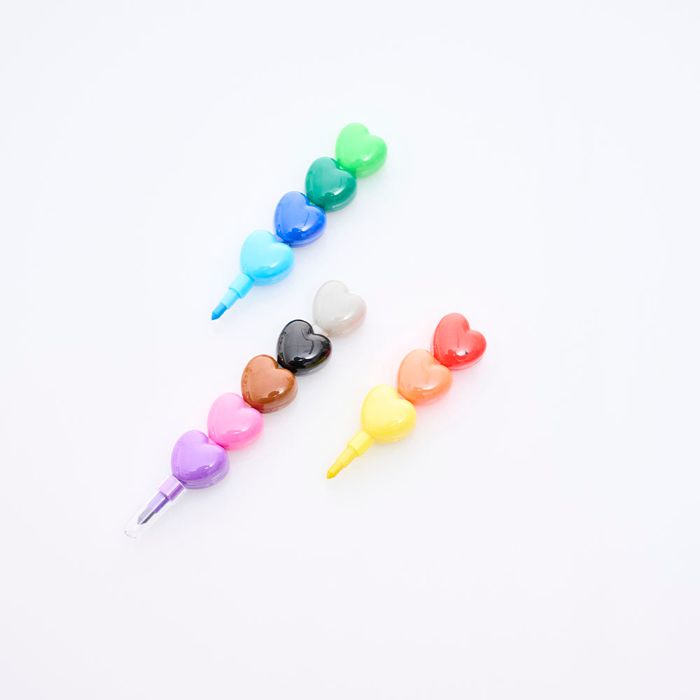 Crayones apilables en forma de corazón. Incluye 12 piezas.