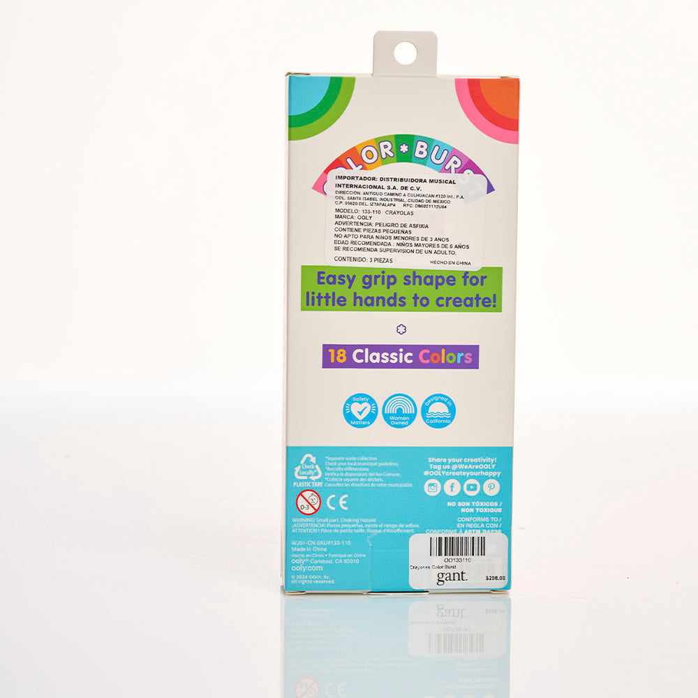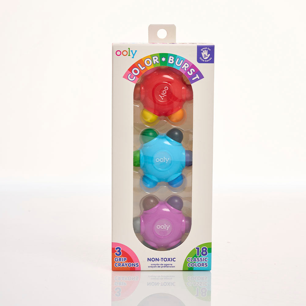 ¡Despierta la creatividad de los más pequeños con el set de Color Burst Crayons - Set de 3 de OOLY! Diseñados especialmente para manos pequeñas, estos crayones ergonómicos permiten a los niños explorar el arte sin frustraciones. Cada crayón presenta una forma única que facilita el agarre y contiene múltiples colores en cada "pétalo", ofreciendo una experiencia de coloreado vibrante y divertida.