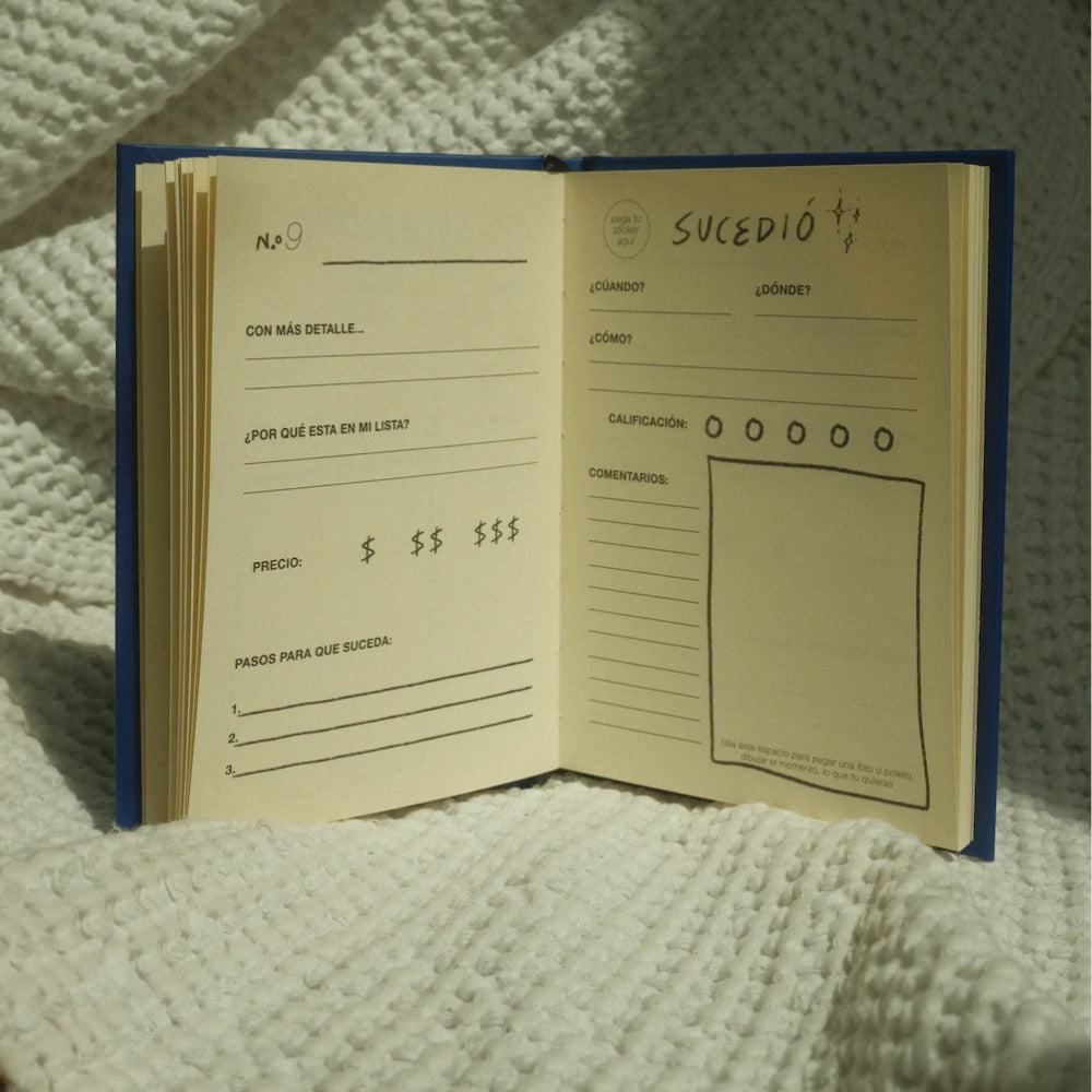 Diario de tapa dura pensado para que anotes, organices y vivas tus sueños, metas y experiencias por cumplir, con espacio para registrar hasta 50 deseos y logros, incluye stickers para marcar cada vez que taches algo de tu lista y está completamente en español con páginas de alta calidad para inspirarte a planear aventuras, reflexionar sobre lo que te importa y hacer realidad tus objetivos más importantes.