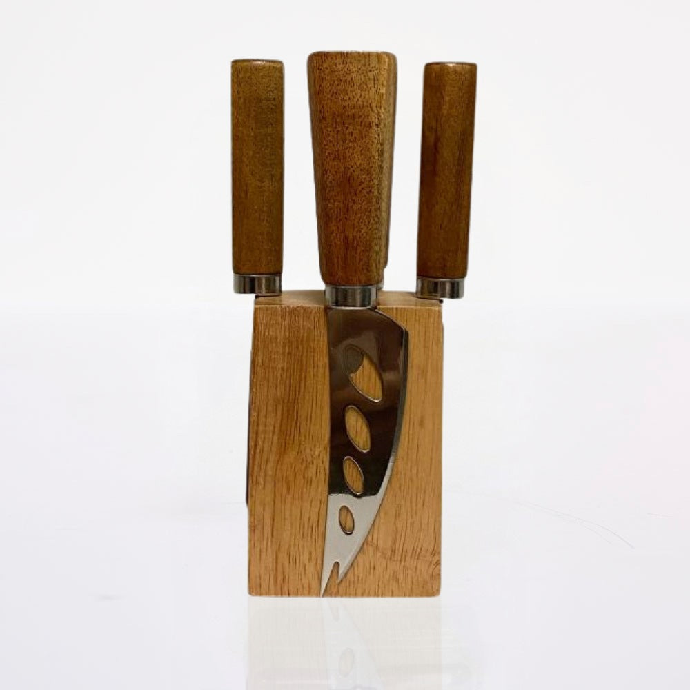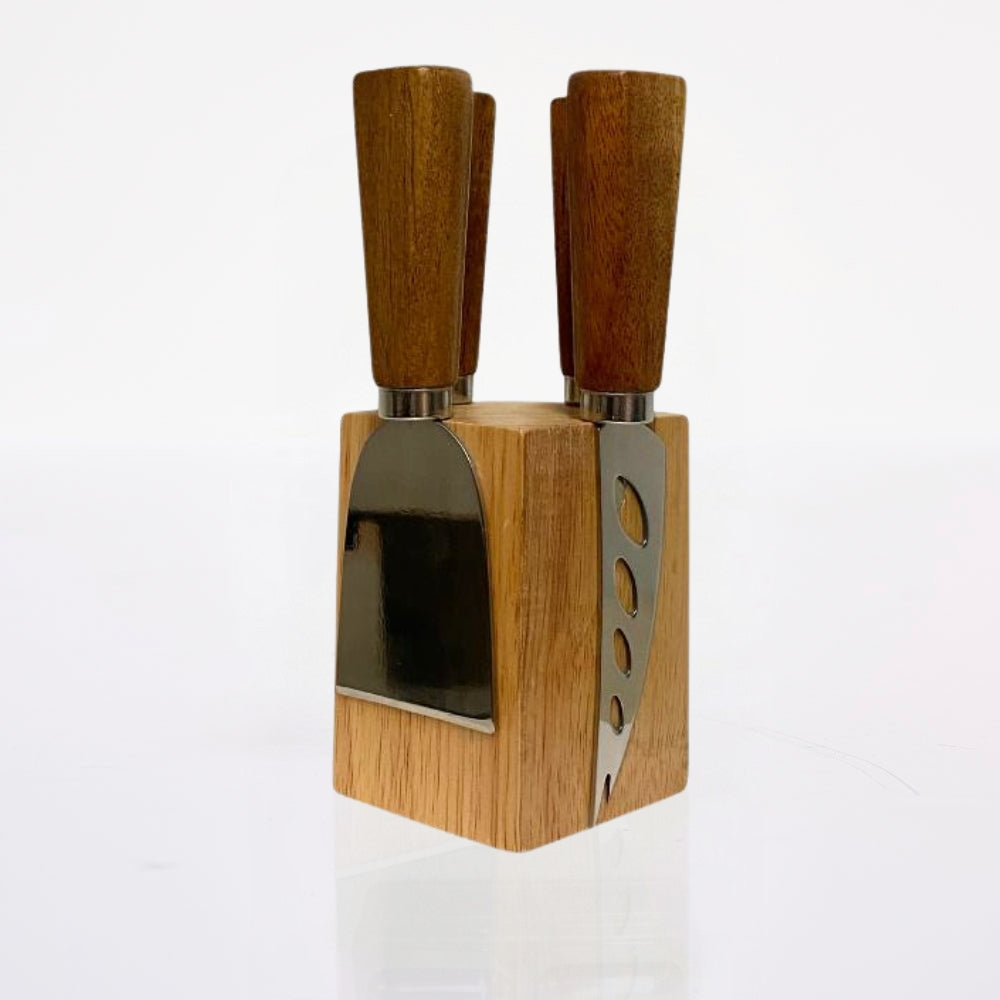 Este elegante set de utensilios para quesos combina funcionalidad y estilo en un práctico bloque de madera. Incluye diferentes cuchillos diseñados especialmente para cortar, rebanar y servir quesos de diversas texturas, desde los más suaves hasta los más maduros. Sus mangos de madera brindan un agarre cómodo y seguro, mientras que las hojas de acero inoxidable garantizan durabilidad y precisión. Ideal para reuniones, cenas o como regalo, este set eleva cualquier experiencia gastronómica con un toque sofisticado.