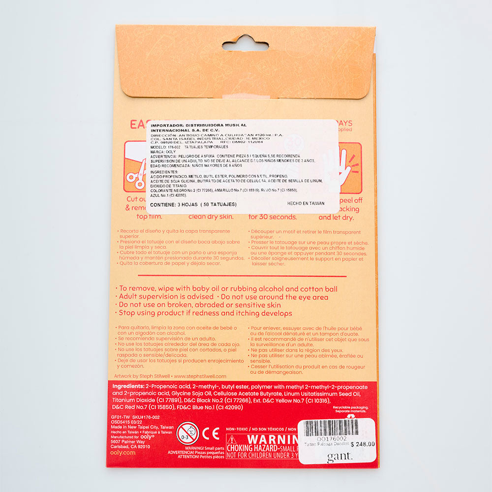3 hojas de tatuajes temporales. Son más de 50 tatuajes. Estos tatuajes temporales son fáciles de aplicar y duran hasta 5 días. No tóxicos