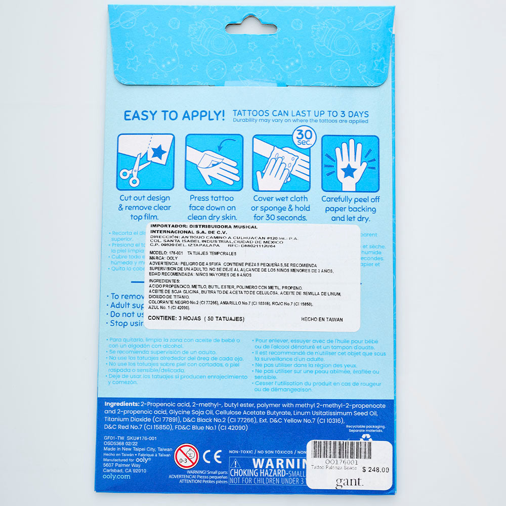 3 hojas de tatuajes temporales. Son más de 50 tatuajes. Estos tatuajes temporales son fáciles de aplicar y duran hasta 5 días. No tóxicos