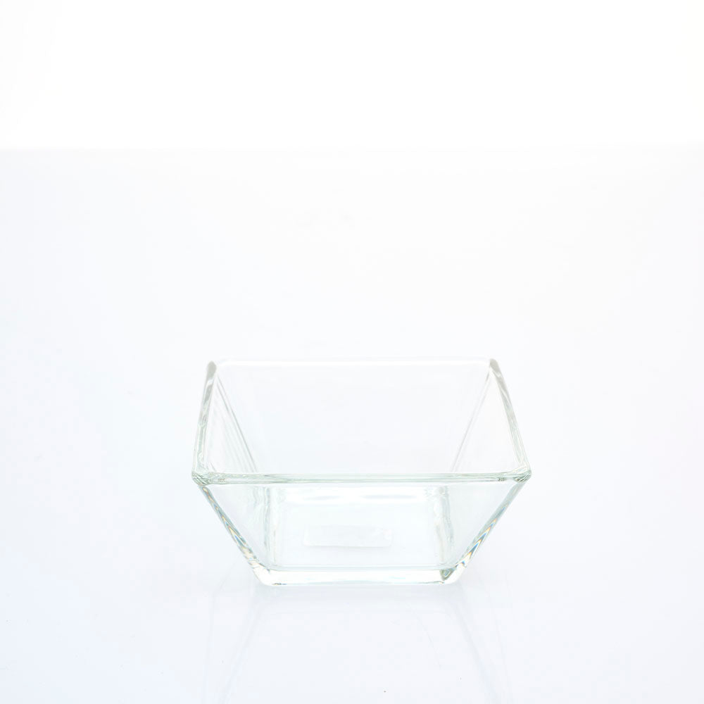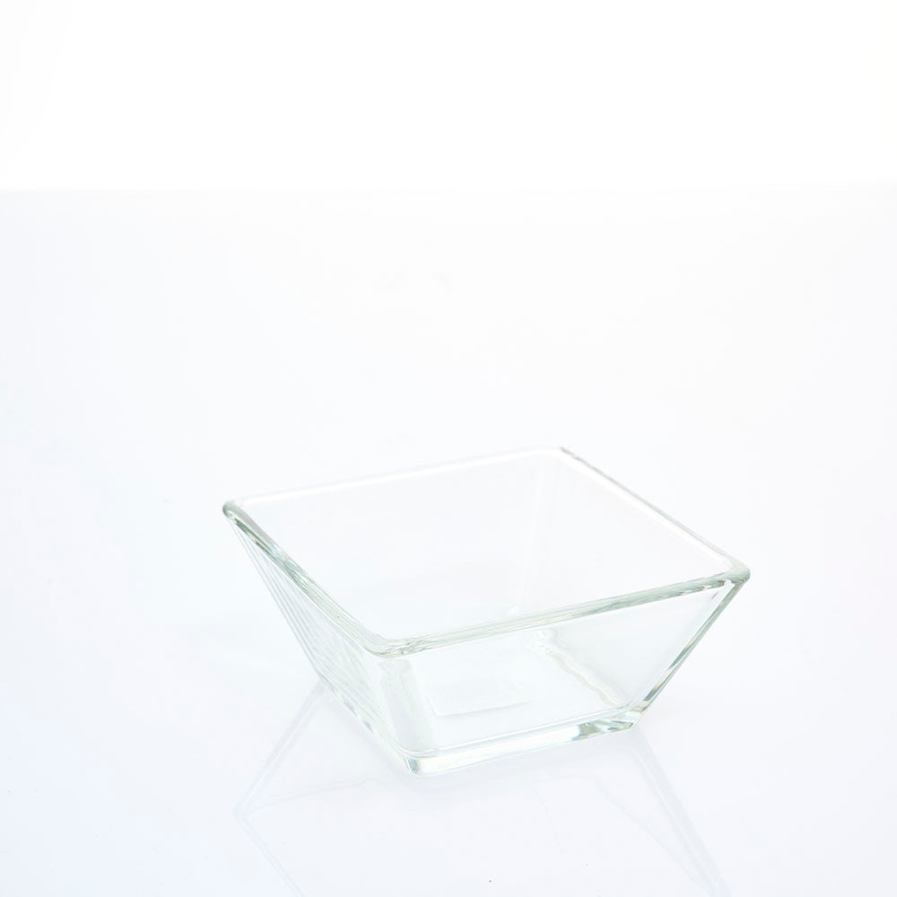 Plato hondo de vidrio con medidas de 14 x 7 cm.