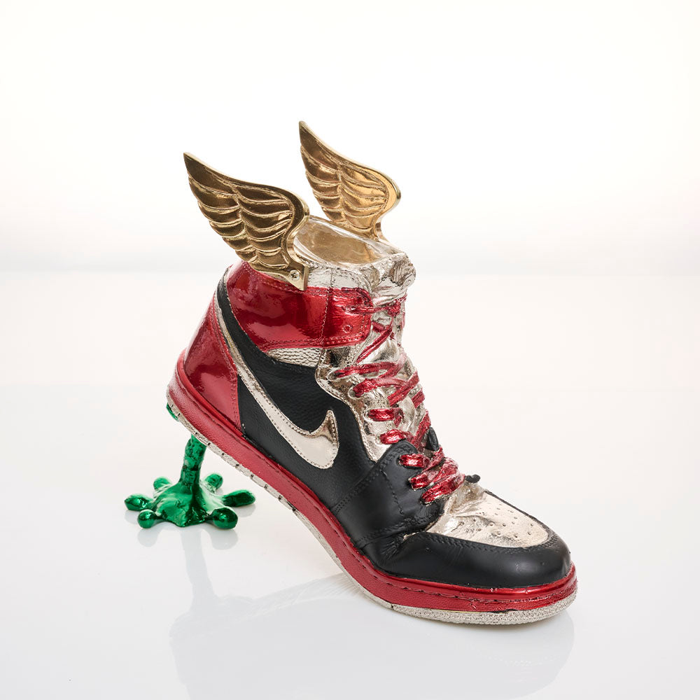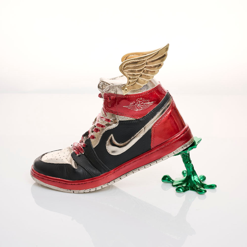 Escultura de Tennis Jordan edición especial de metal. Ideal para decorar cualquier espacio de tu hogar. Medidas: 25 cm x 22 cm.