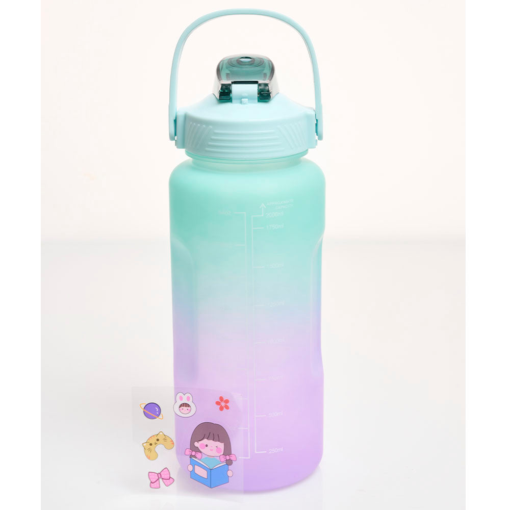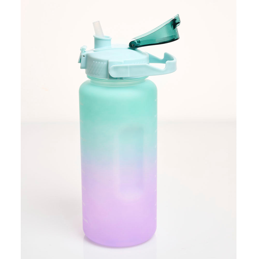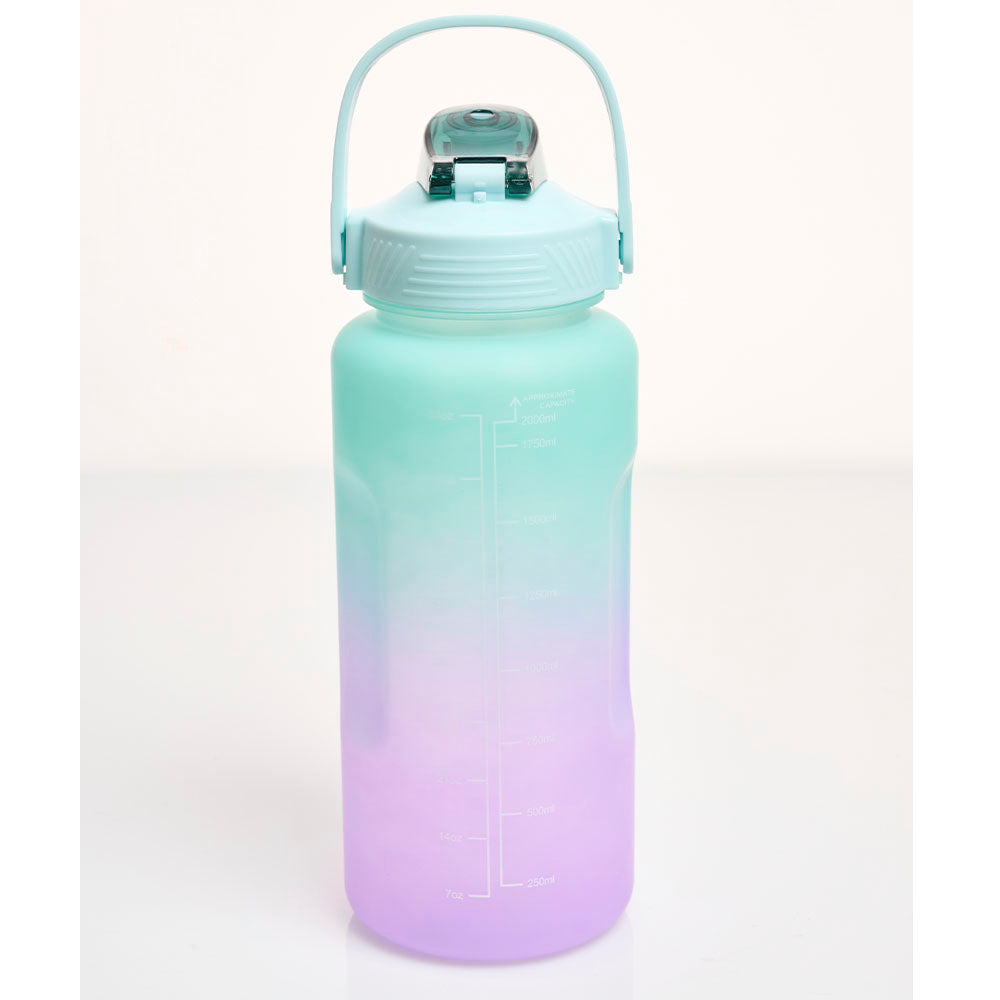 Termo de plástico con frases motivacionales para impulsar a tomar más agua. Capacidad de hasta dos litros.